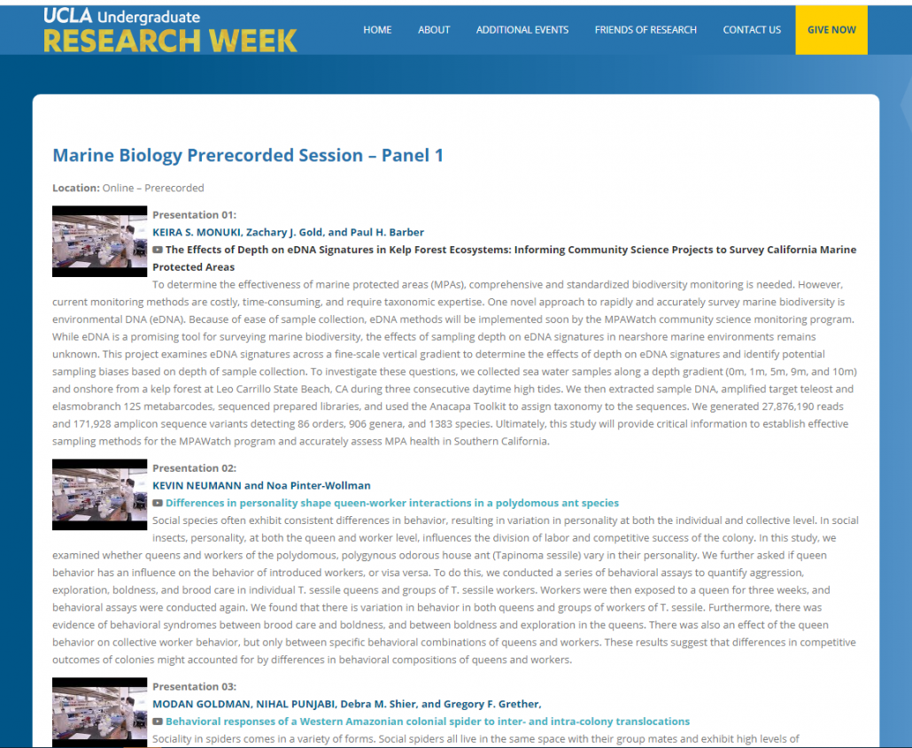 When visitors click to see recorded presentations or multimedia, they can see all available recorded presentations and multimedia for that subject, including each presenter’s name, project title, and abstract or artist statement.